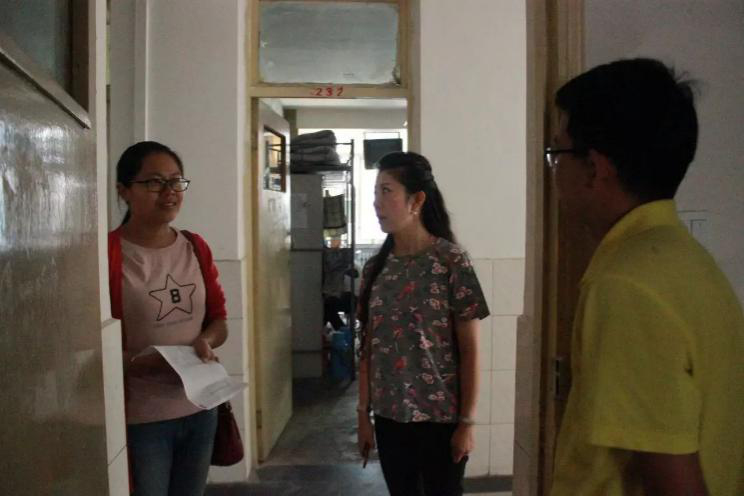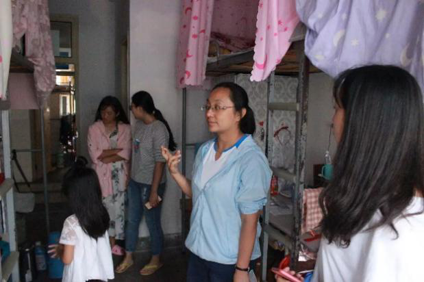 新学期伊始,为了具体掌握员工到校情况,切实保证员工人身和财产的安全。分管员工工作领导蒋玲,团委书记许琼英,兼职辅导员杨红,大二到大四各班班主任于8月20日晚走访员工宿舍。