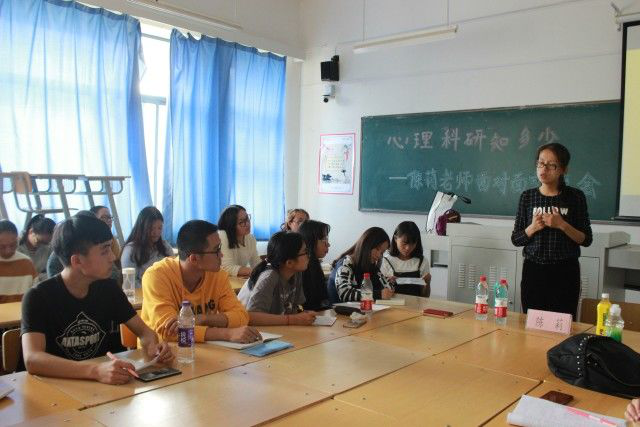 9月28日下午,k8凯发学习部成功举办“心理科研知多少—陈莉老师面对面交流会”活动。本次活动由学习部杨霄融同学主持,k8凯发本科生四十余人参加。