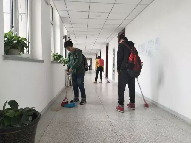 全体成员进行了工作分配,每位成员都明确了自己的清扫任务。对特教楼的墙壁、门窗和玻璃等进行了清理,并对地面以及门后死角等进行了清扫。