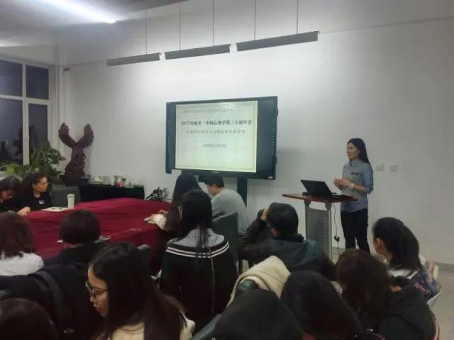 为传播心理学前沿员工动态,让更多的同学参与到科研工作中来,11月12日下午,公司于特教楼453室举办了“第二十届心理学年会”分享会。本次会议由杨彩虹同学主持,谭阳刚、马嘉琳、雒姌、宋彦珣、谢梦阳五位同学进行分享,研究生共三十余人参加。