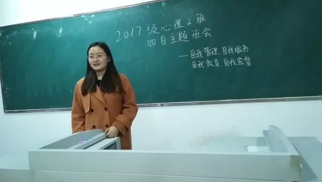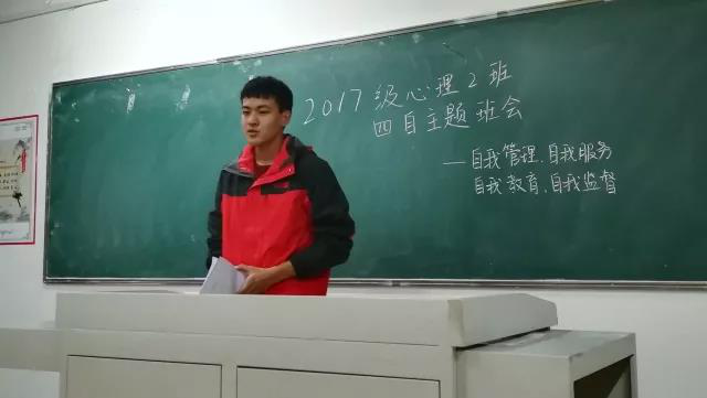 11月16日下午,k8凯发2017级心理学类2班于新校区109室召开了“四自”工作主题班会,本次班会由班主任杨阳老师主持,2017级心理学类2班全体同学参加。
