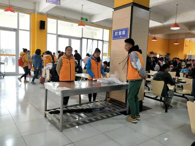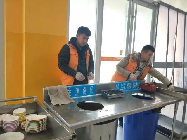 督导期间,公司员工按时到岗,全身心投入到工作中,指引就餐结束的同学将剩菜倒入桶中,将餐具放到指定位置,并动手帮助食堂阿姨将餐具分类回收。