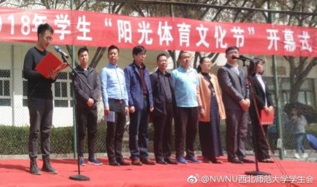 3月28日中午,2018年“董守义”杯篮球赛在篮球场举行开幕仪式。