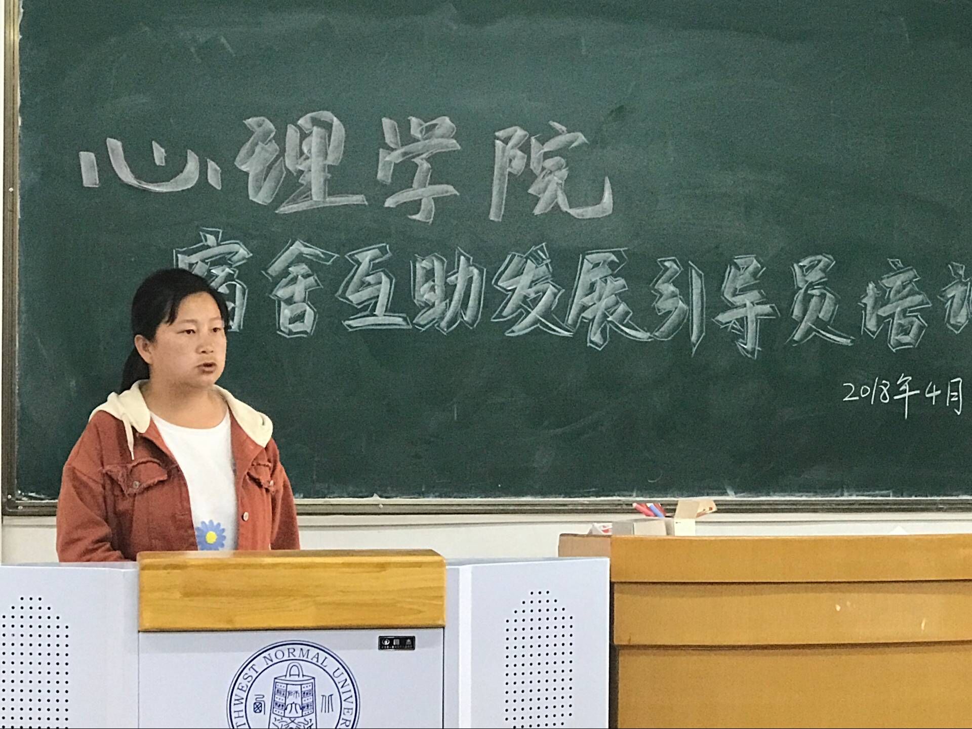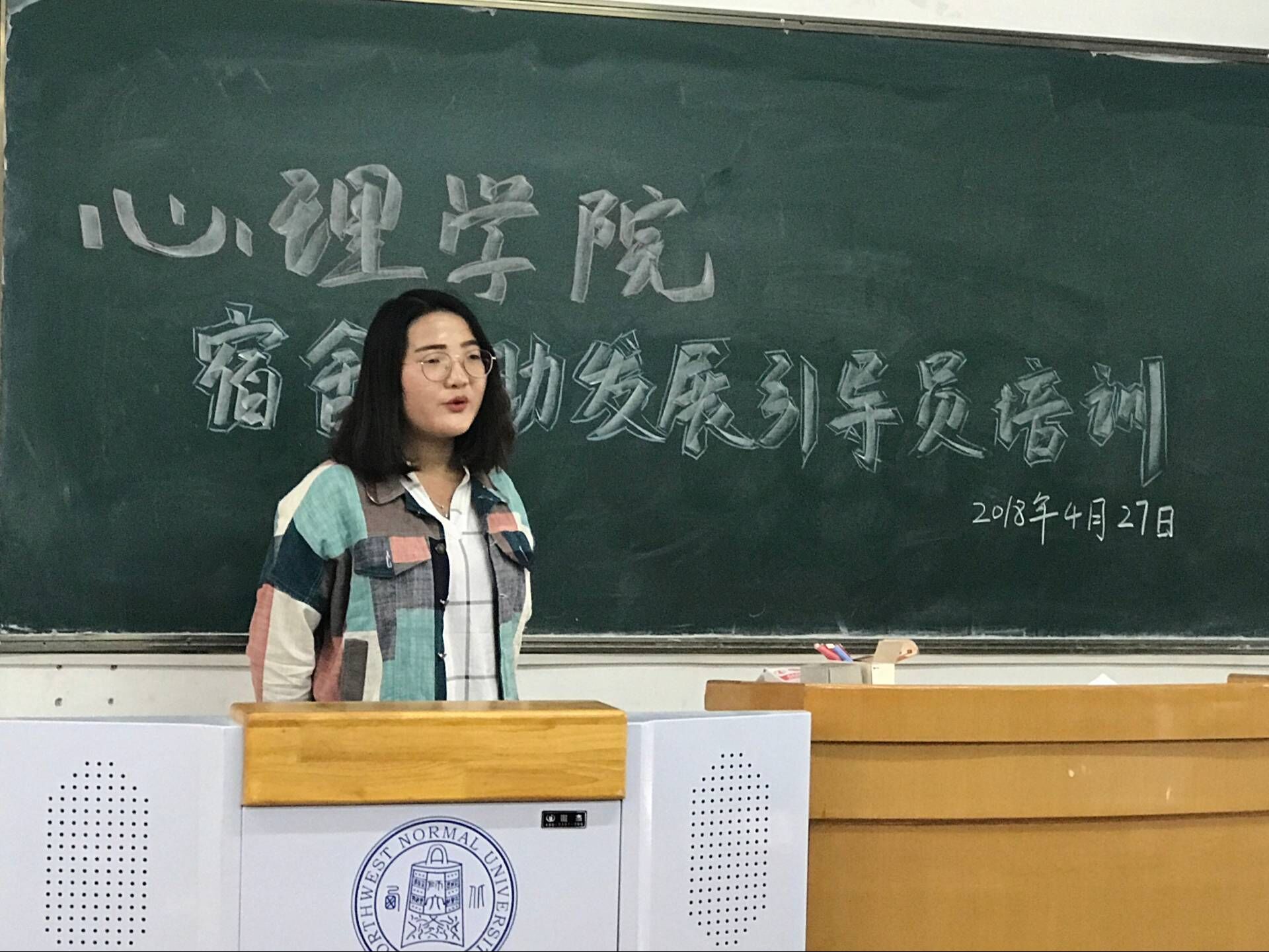 4月27日下午,k8凯发于教七104室举行了宿舍互助发展引导员培训大会,会议由生活部部长柴雪梅同学主持。