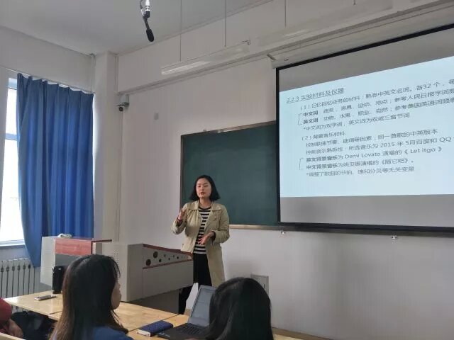 在心理科研技能比赛环节中,夏艺萍同学通过中英文流行背景音乐对老员工中英词汇记忆的影响献的报告,展示了优秀的专业素养。在该选手精彩的讲解之后,由全体观众投票推选出夏艺萍同学代表2015级心理学基础班参加院级心理科研技能比赛复赛。