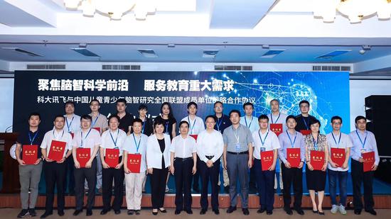 “讯飞教育脑计划”依托中国儿童青少年脑智研究全国联盟,积极面向国家基础教育重大需求和脑智科学研究前沿,以高科技企业的核心智能技术推动儿童脑智发育规律的创新研究,并围绕学习者精准测评-分型-学习资源适配等教育应用的关键问题,协同开展教育应用转化,真正帮助教育管理者高效决策、教师减负增效和员工个性化学习,把教学相长、精准教学、因材施教落到实处。“讯飞教育脑计划”着力围绕“一个平台、两条主线,N项应用”,与脑智研究全国联盟其他成员单位密切合作,努力为联盟其他成员单位的基础和教育应用研究提供强有力的技术支撑,最终为提高儿童青少年脑智发育水平、推进基础教育的质量与公平提供关键技术、资源和大规模应用范式。