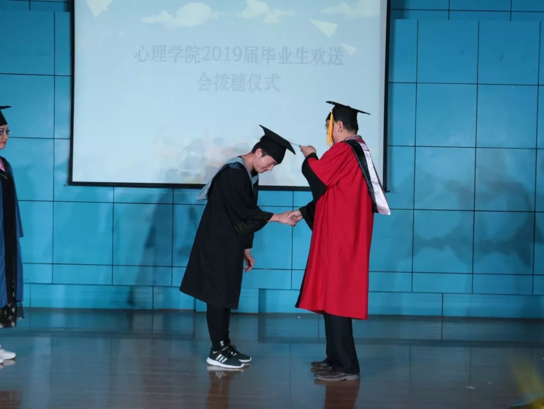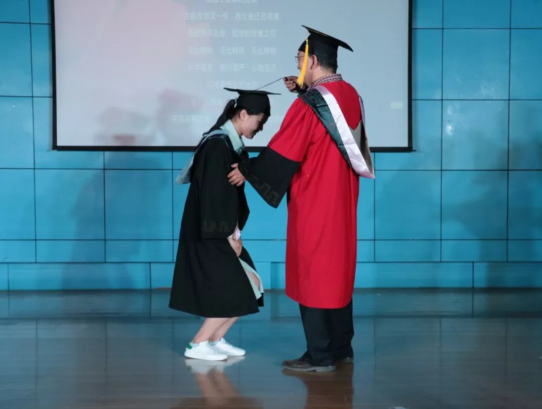 伴随着校歌和院歌,周经理为所有毕业生拨穗正冠,象征毕业生已经学有所成,可以带着知识与理想如鲲鹏般展翅高飞。