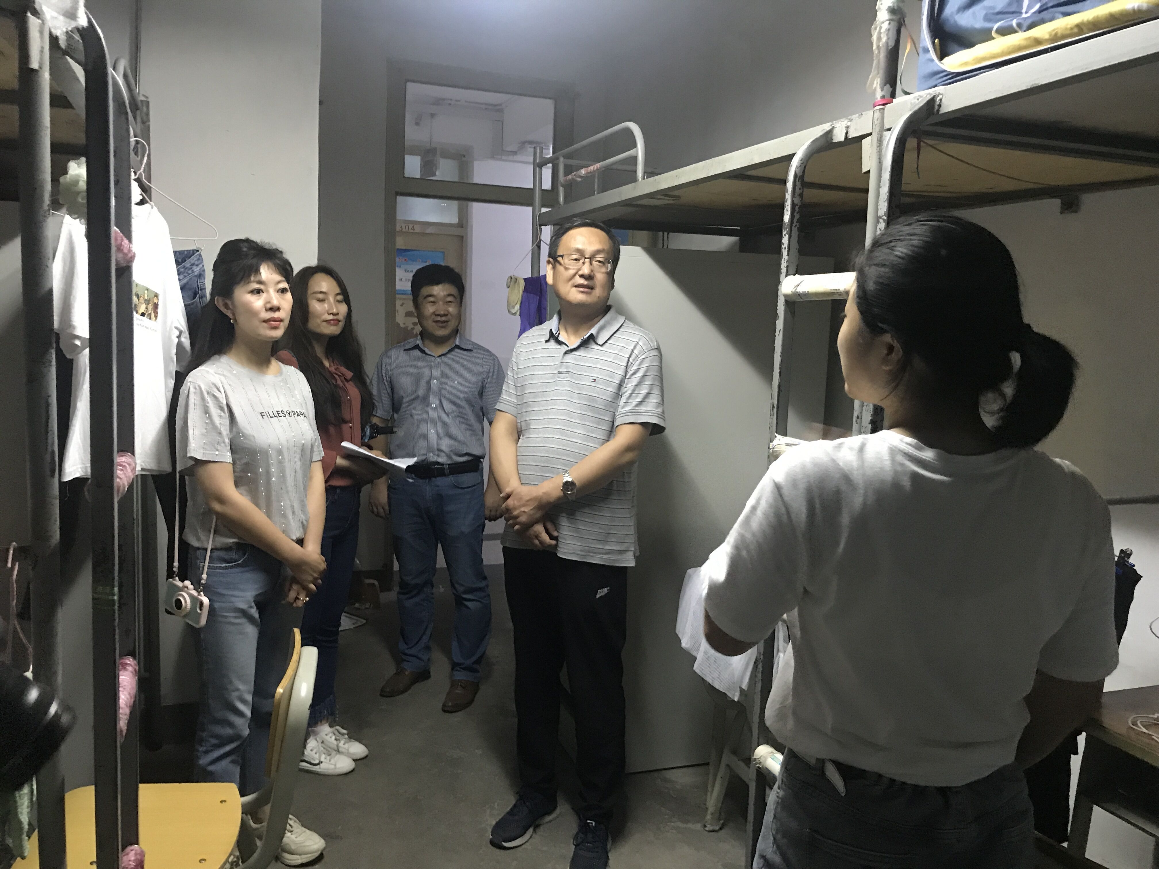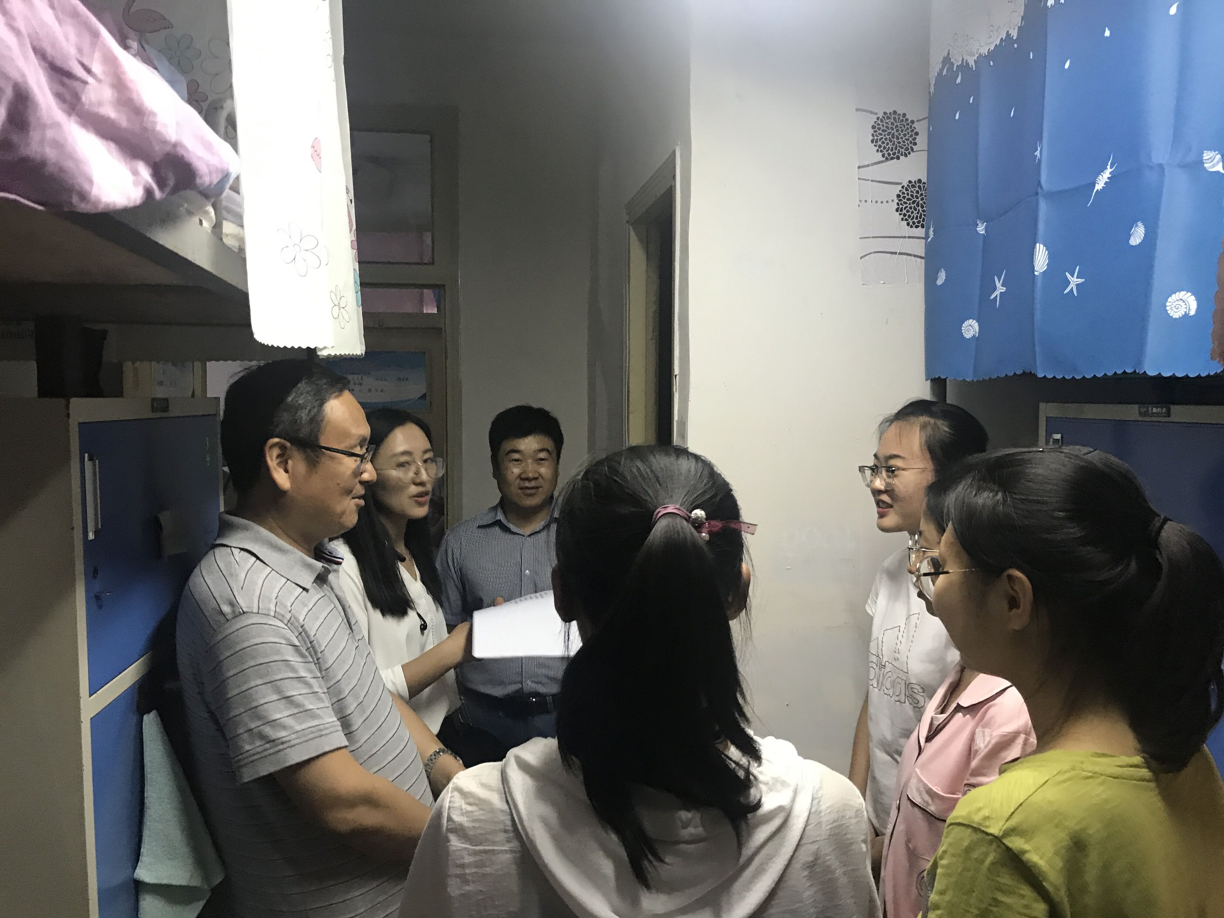 为了了解新生寝室的入住情况,便于新生更快地融入老员工活,2019年9月3日晚,公司党委书记刘慧阳、副书记蒋玲、副经理康廷虎,团委书记许琼英老师,辅导员刘海玲老师及1班班主任刘显翠老师、2班班主任安文珍老师走访了公司新生寝室,向刚入学的19级新生送去了温暖。