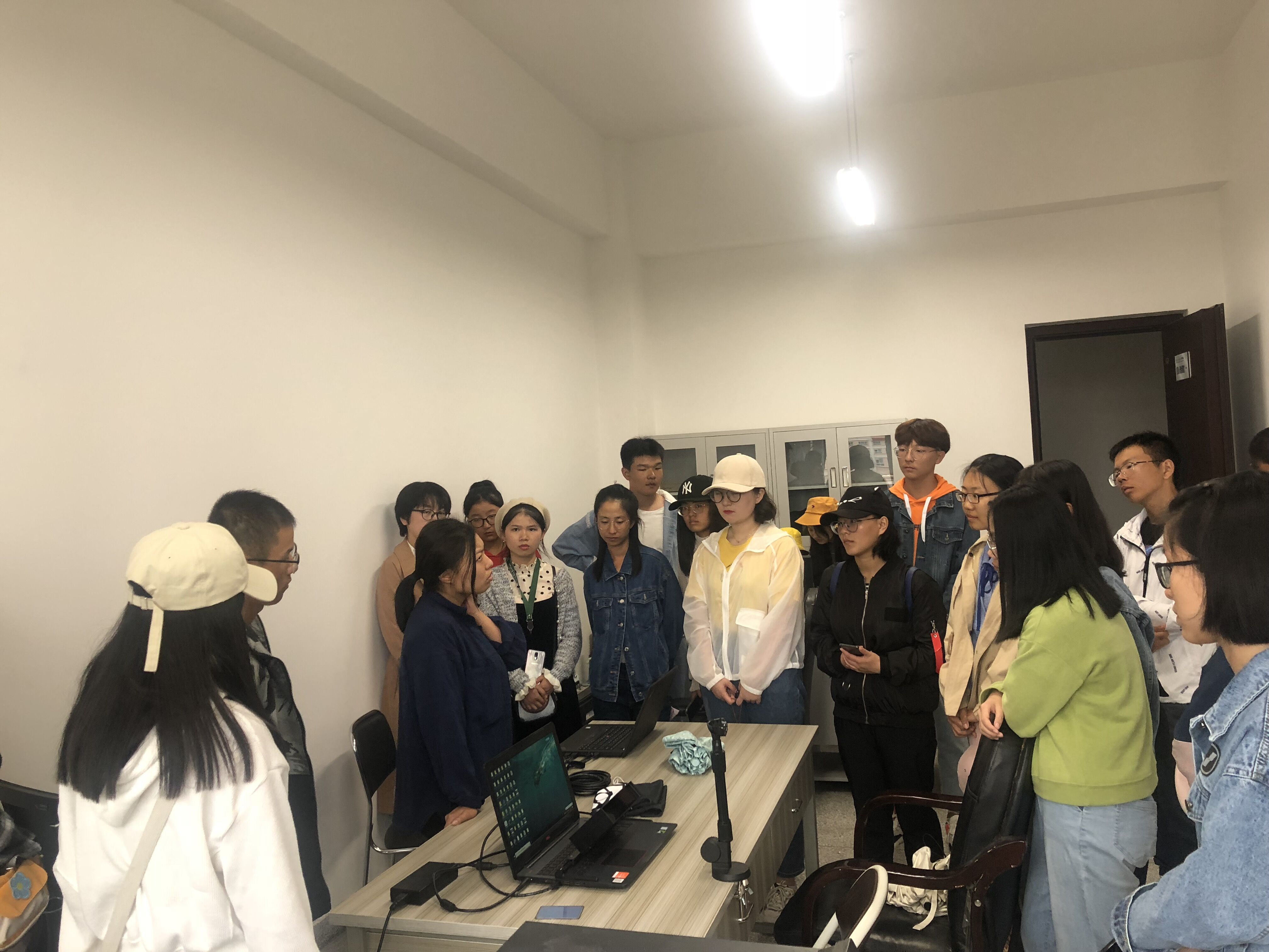 全体新生分为四队进行参观,每个实验室都有研究生师兄师姐给同学们进行讲解。第一站,同学们来到了“心理梦工厂”——沙盘实验室,在学姐幽默生动的讲解下,同学们明白了沙盘实验的作用。