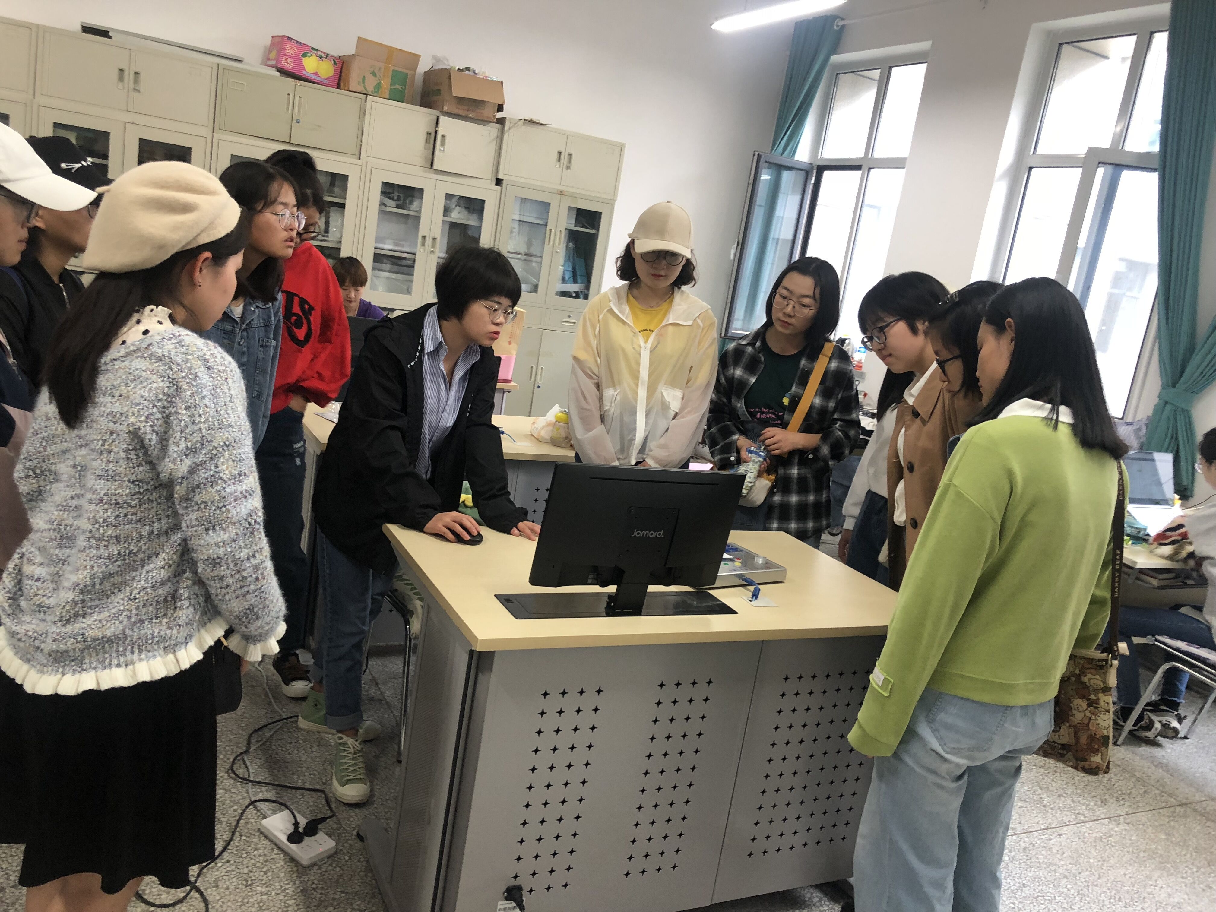 最后同学们参观了基础实验室,学姐先讲解了可升降的电脑,之后指导同学们看实验指导语,进行了实验练习。