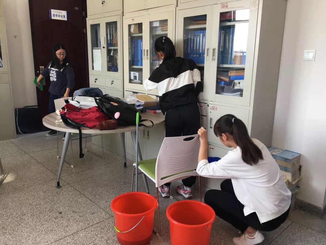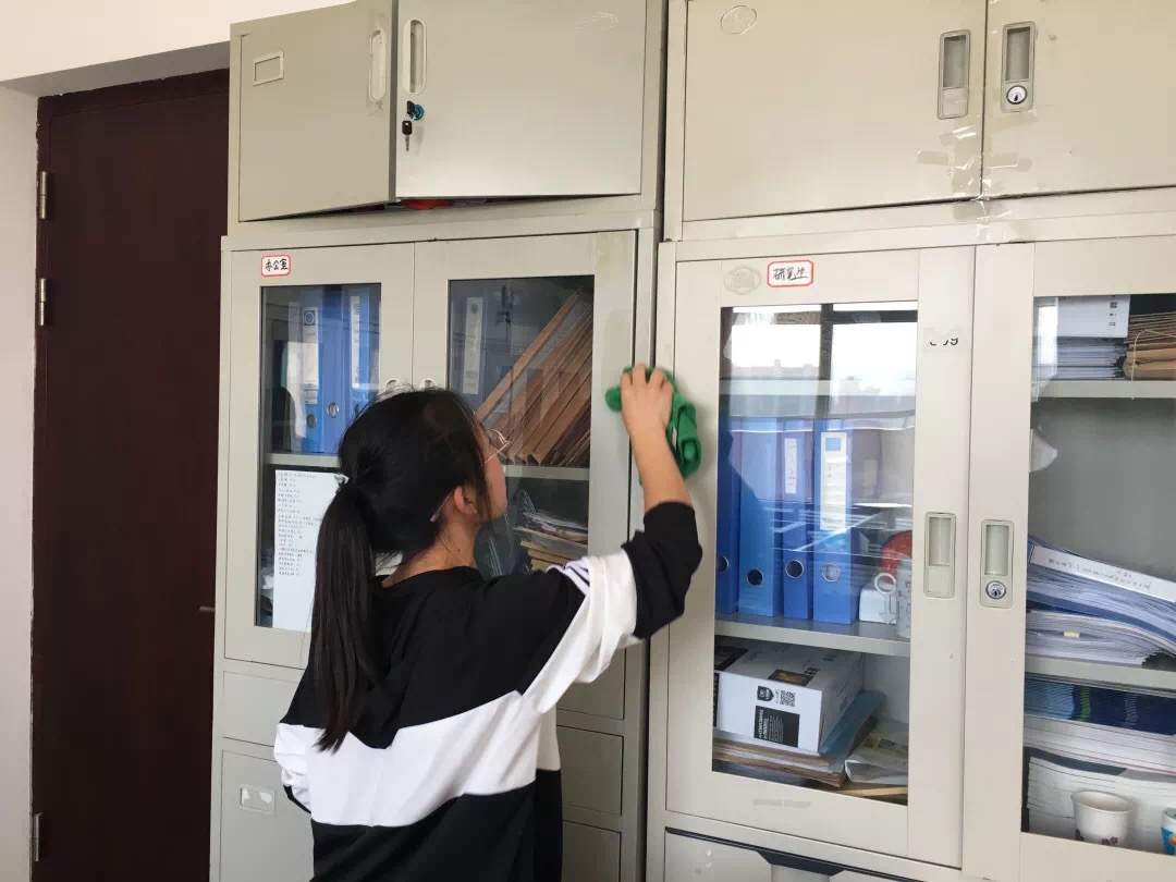 劳动志愿服务一开始,同学们便表现出了极大的热情。在合理分工后,一些同学来到特教楼底,不顾炎炎烈日,仔细挑捡草地中的垃圾,并将门口楼梯边的地面清扫干净。其他同学在办公室中帮助老师扫地、擦窗,为窗边的盆栽浇水并修剪枯枝落叶,不放过任何一个卫生死角。全体同学的悉心打理,为老师和同学们创造了一个更加干净整洁的工作和学习环境。
