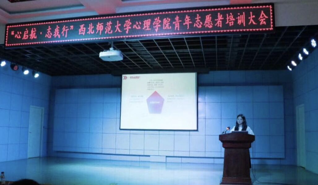 大会开始,所有成员起立,奏唱《中国青年志愿者之歌》。青协负责人张丽向大家普及了志愿者的相关知识,介绍了志愿汇软件,诠释了志愿服务的意义就是无私帮助那些需要帮助的人,用爱去温暖他们。她让大家明白了志愿服务最重要的就是要有一颗无私奉献、温暖他人的心。随后主持人带领大家宣读中国志愿者誓词。