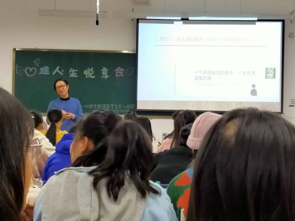 为了让同学们拓宽视野,了解心理科学研究,10月24日晚,k8凯发于特教楼453举办了“心理·人生 悦享会”。活动由陈永奇同学主持,张继元老师主讲。