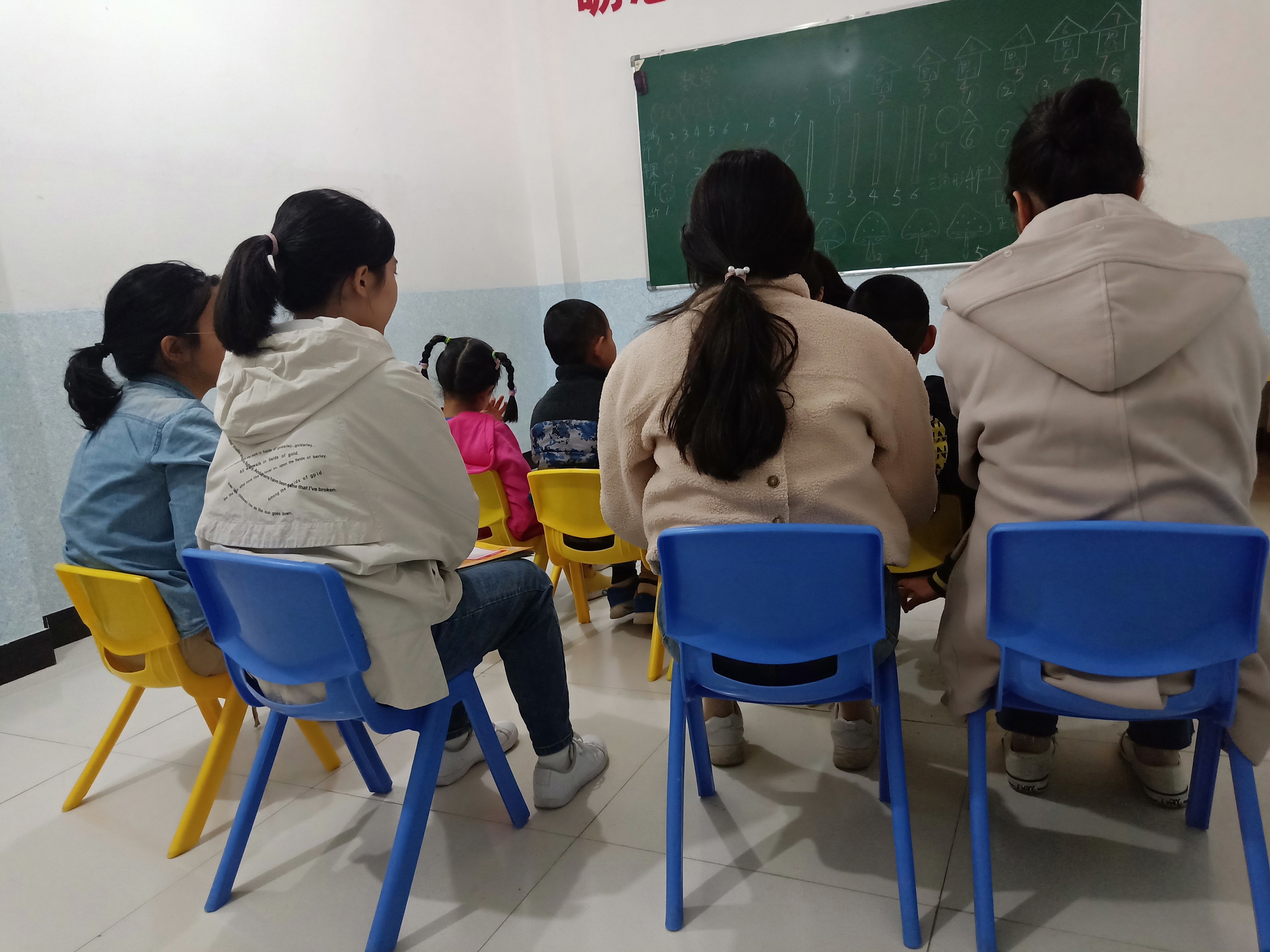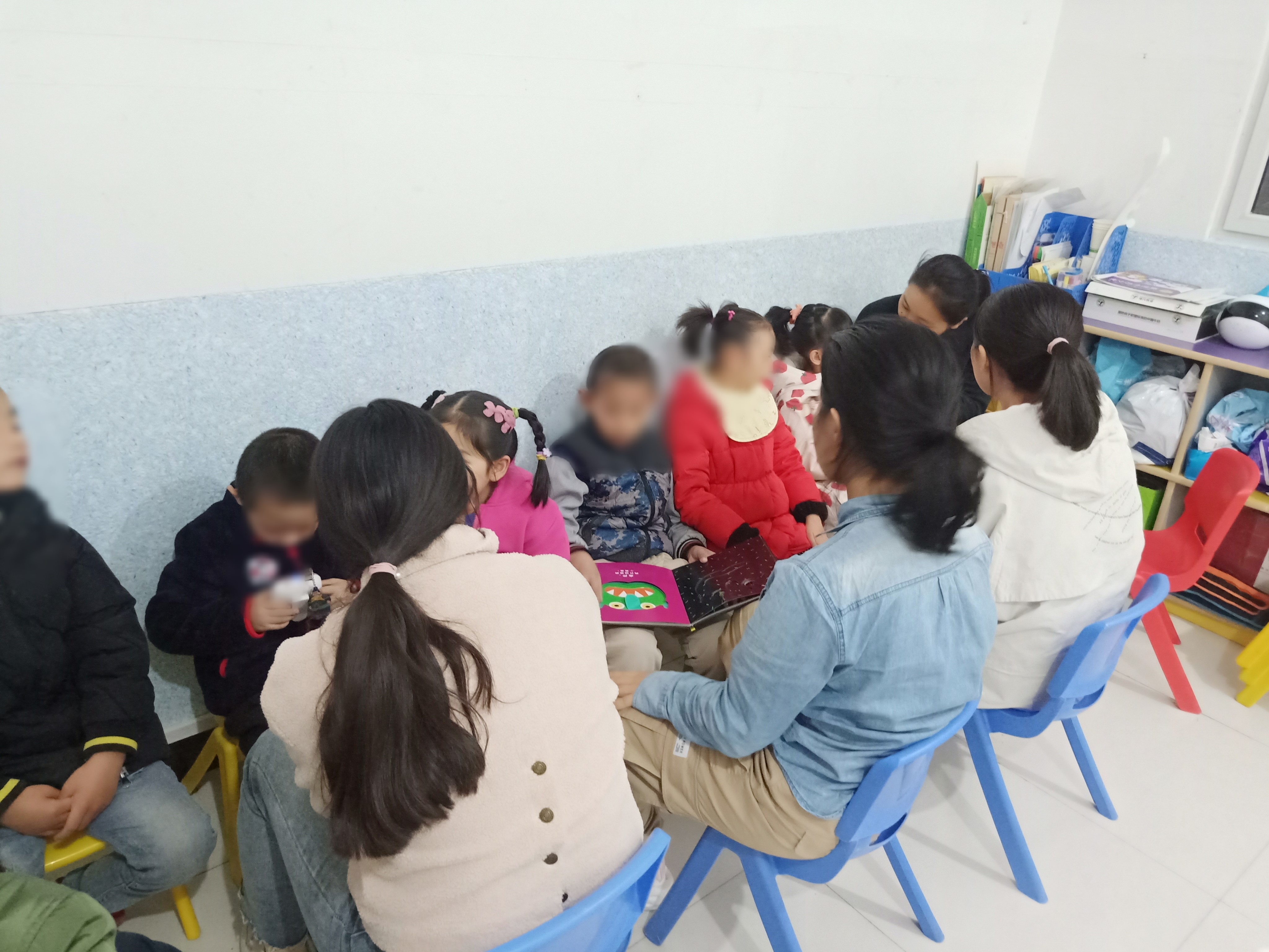 进入教室后,刚好蜗牛班的张老师在上课,我们没有打扰他们,而是坐在小朋友的身后和他们一起听老师讲故事。
