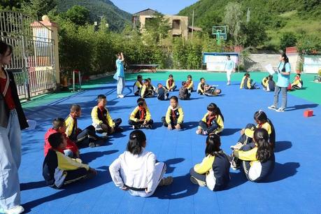 8点,在活泼激昂的早操音乐中,我们参加了鹅嫚小学的早间跑操活动,开始了我们的一天实践。