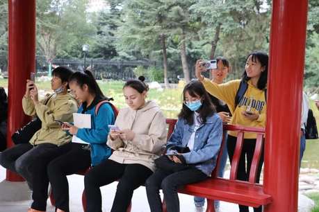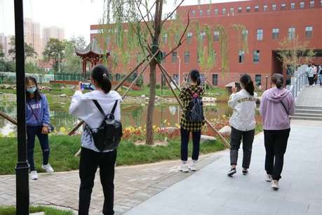 随后,同学们来到了公司刚完工不久的如意湖旁,欣赏了校园中独有的美景。