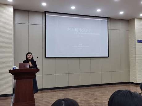讲座上,赖珊老师首先介绍了精神分析是什么,并以自身经历讲解了精神分析的学习之道。之后,赖珊老师重点讲解了精神分析的发展脉络,从精神分析的起源背景、发展历程,到人物谱系以及这些精神分析心理学家的重要观点,再到几大经典的理论,概括性地总结了精神分析流派的重要思想和理论模型。最后,赖珊老师运用自己所学简单说明了精神分析流派的一些基本技术以及临床上的运用,比如自由联想技术、梦的解析技术、防御机制、移情和反移情等等,为广大师生展现了精神分析流派的全貌,使得师生对精神分析的理论有了更加深入的了解。
