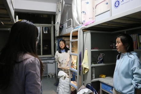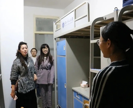 院领导以及员工会成员进入宿舍对宿舍电器以及宿舍卫生进行检查并纠正,禁止在宿舍内使用电褥子、电吹风机等违禁用品,排除可能发生安全问题的隐患。在走访大一员工宿舍时,辅导员王一飞就男生抽烟问题提出建议,在宿舍内要做好宿舍内务整理,保证宿舍安全干净整洁,维持良好宿舍环境。