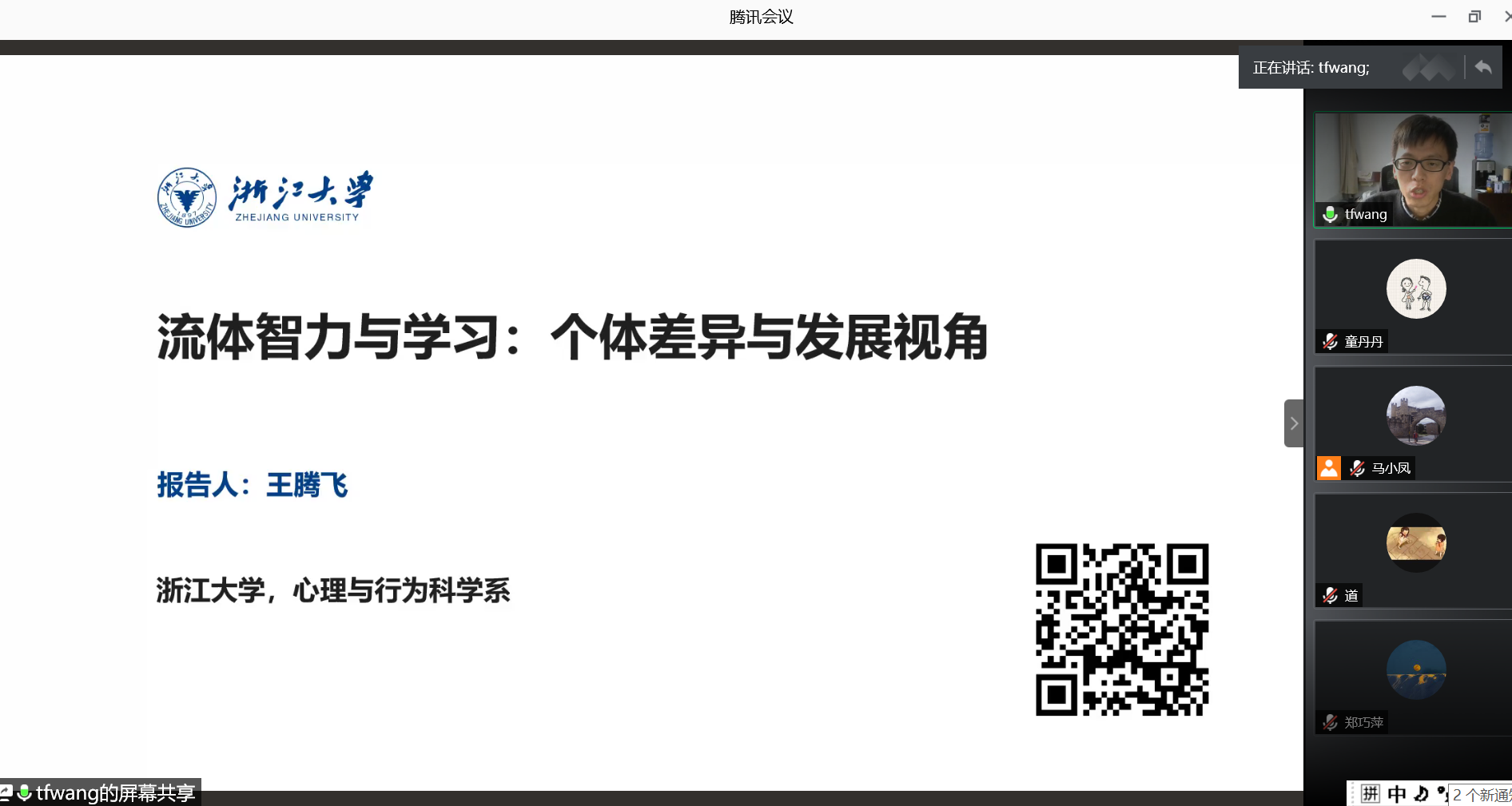 2020年12月17日下午,应k8凯发邀请,浙江大学王腾飞副教授为公司师生作了题为《流体智力和学习:个体差异与发展视角》的学术报告。报告由k8凯发副经理马小凤教授主持,k8凯发百余名师生在线收听了报告。