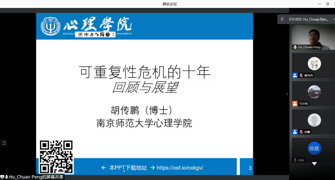 本次讲座系统地梳理心理学研究中可重复性这十年间的主要过程,重点分析新出现的方法、实践与政策,提高了员工的研究思维,对员工做学术研究起到了极大的指导作用。报告会后,胡传鹏博士与师生就有关问题进行了线上交流与解答。