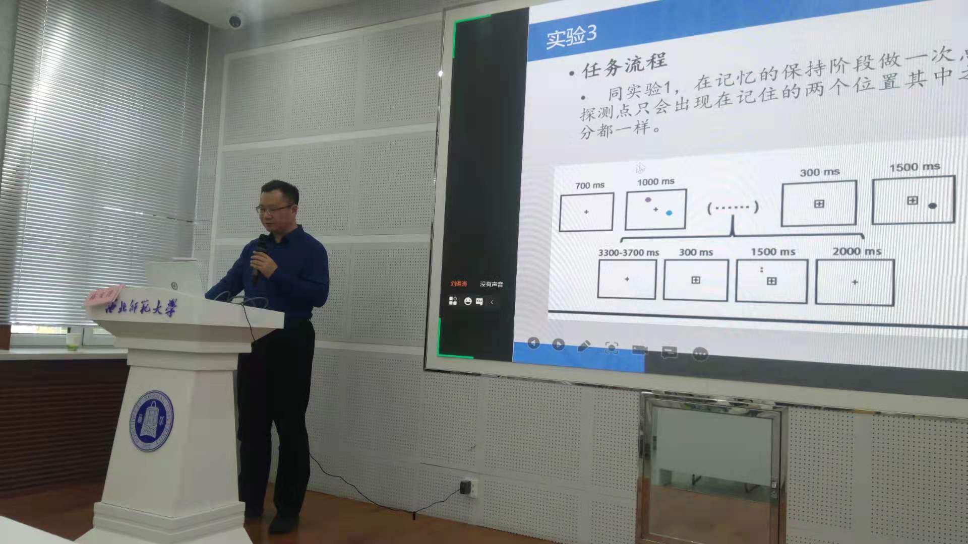 本次报告共包含四个逻辑紧密的研究。陈老师首先介绍了笔迹再认中的自我参照加工,而后论述工作记忆表征中的自我参照优势的研究,最后分别对基于fMRI与脑网络技术探索工作记忆表征中的自我参照优势的神经机制的研究展开详细的讲解和论述。