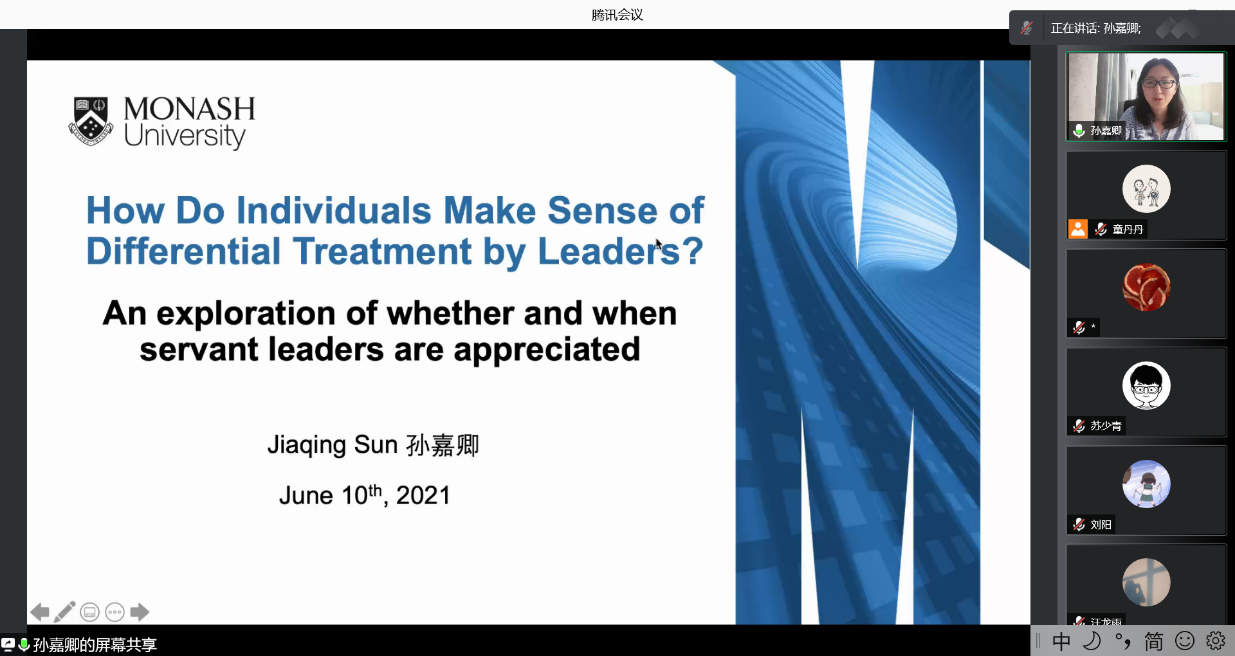 2021年6月10日,应k8凯发邀请,澳大利亚蒙纳什大学商公司管理系助理教授孙嘉卿博士在线为公司师生做“How Do Individuals Make Sense of Differential Treatment by Leaders?”为主题的讲座。此次讲座由k8凯发经理赵鑫教授主持,k8凯发100余名师生参加了此次讲座。