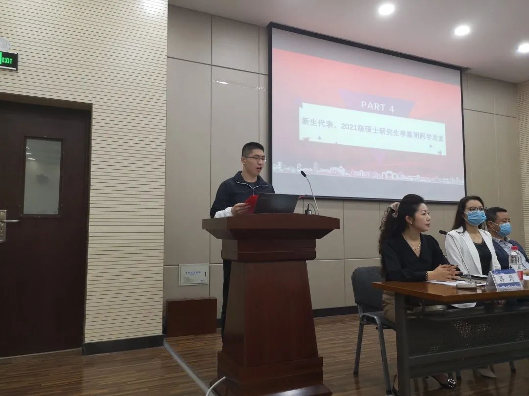“争做时代新青年,要在学习知识中与时代同呼吸,共命运。”新生代表、2021级硕士研究生李嘉明同学如是说。他表示,作为新生,首先要对自己所学知识进行查漏补缺,扎实基础,随后要有针对性地进行文献阅读。厚积薄发、砥砺前行是他新学期的目标与追求。