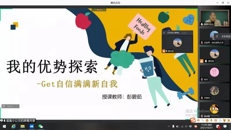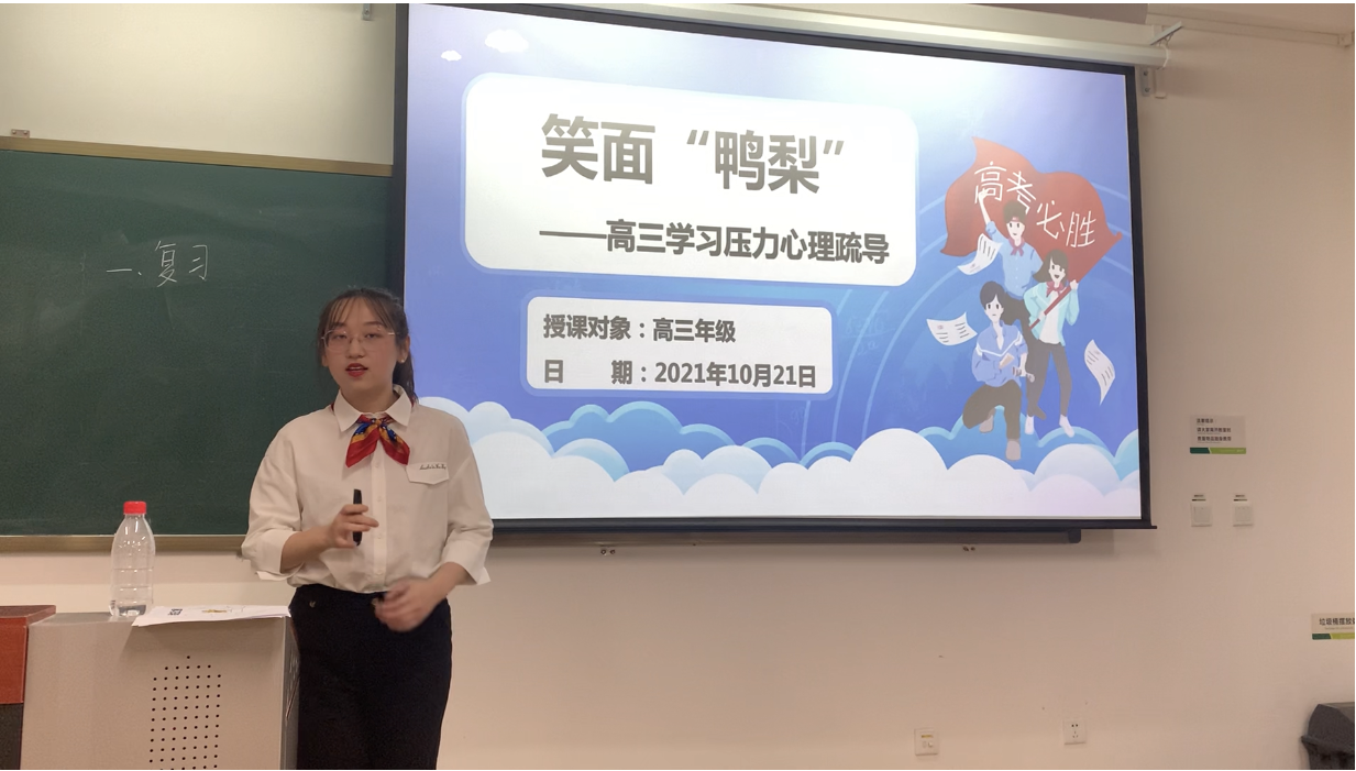 5位参赛同学根据不同学段员工的年龄特点及心理健康教育主题,以学业压力应对、人际交往、价值观塑造等为选题,展示了教学设计和教学活动组织。公司邀请专家并组织评审委员会,对参赛同学的教学设计、教学内容和教学效果进行评审。经过评审,2019级应用心理学1班谢朝腾同学以优异成绩胜出,公司将推荐她的作品参加第二届全国老员工心理辅导课教学创新展示会。