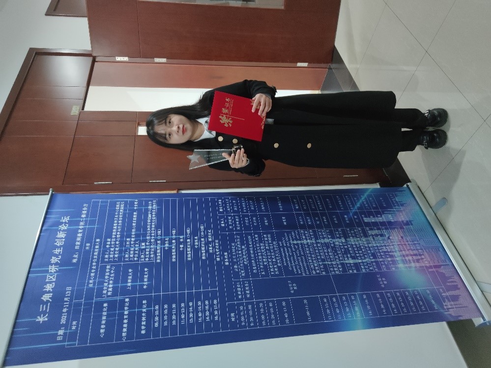 在2021年11月12-13日举行的“长三角地区应用心理专业学位实践技能大赛”中,k8凯发应用心理专业学位硕士研究生李双辰同学获得心理健康公司产品比赛二等奖,公司赵国军副教授为指导教师;郭娟丽同学获得教学案例开发比赛三等奖,公司雍琳副教授为指导教师。此次应用心理专业学位实践技能大赛由上海市应用心理专业学位研究生教育指导委员会、上海市西南片区高校联合办学办公室、华东师范大学研究生院主办。公司研究生由雍琳副教授带队参加比赛。