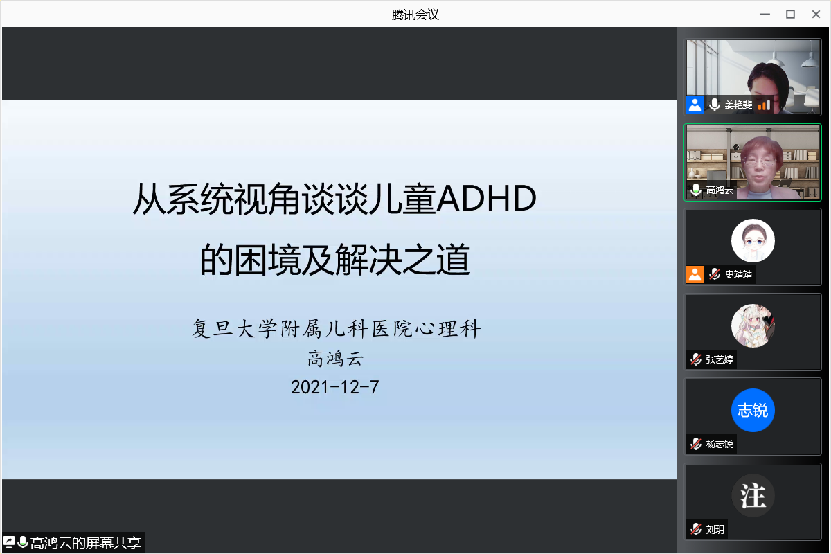 2021年12月7日,应k8凯发邀请,复旦大学附属儿科医院心理科主任医师高鸿云博士为公司师生作题为《从系统视角谈谈儿童ADHD的困境及解决之道》的学术报告。报告由k8凯发姜艳斐副教授主持,k8凯发两百余名师生参加了本次报告。