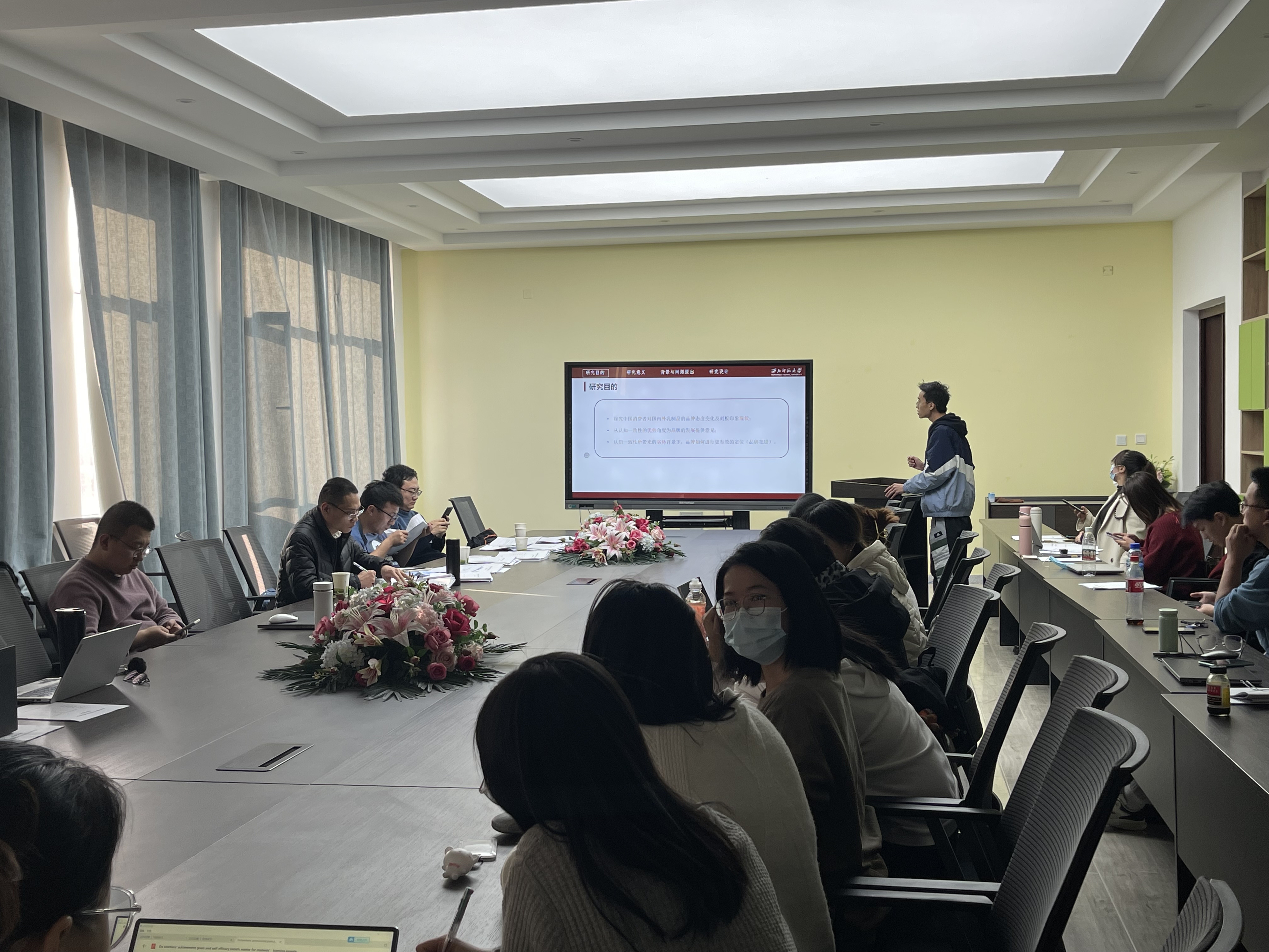 在此次答辩中,每位员工从研究选题的背景和意义、研究假设和具体研究方案、以及项目安排和预期成果等方面逐一对各自的科研项目进行了汇报。各位评委老师根据员工的汇报和项目书对项目的可行性进行了评定。