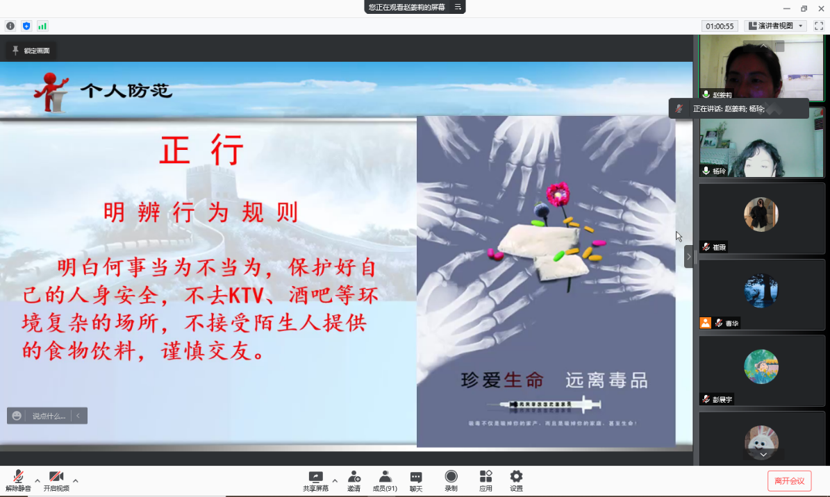 报告的最后赵警长从正意、正心、正识、正行四个方面告诫大家要珍爱生命,远离毒品构建自己美好人生。