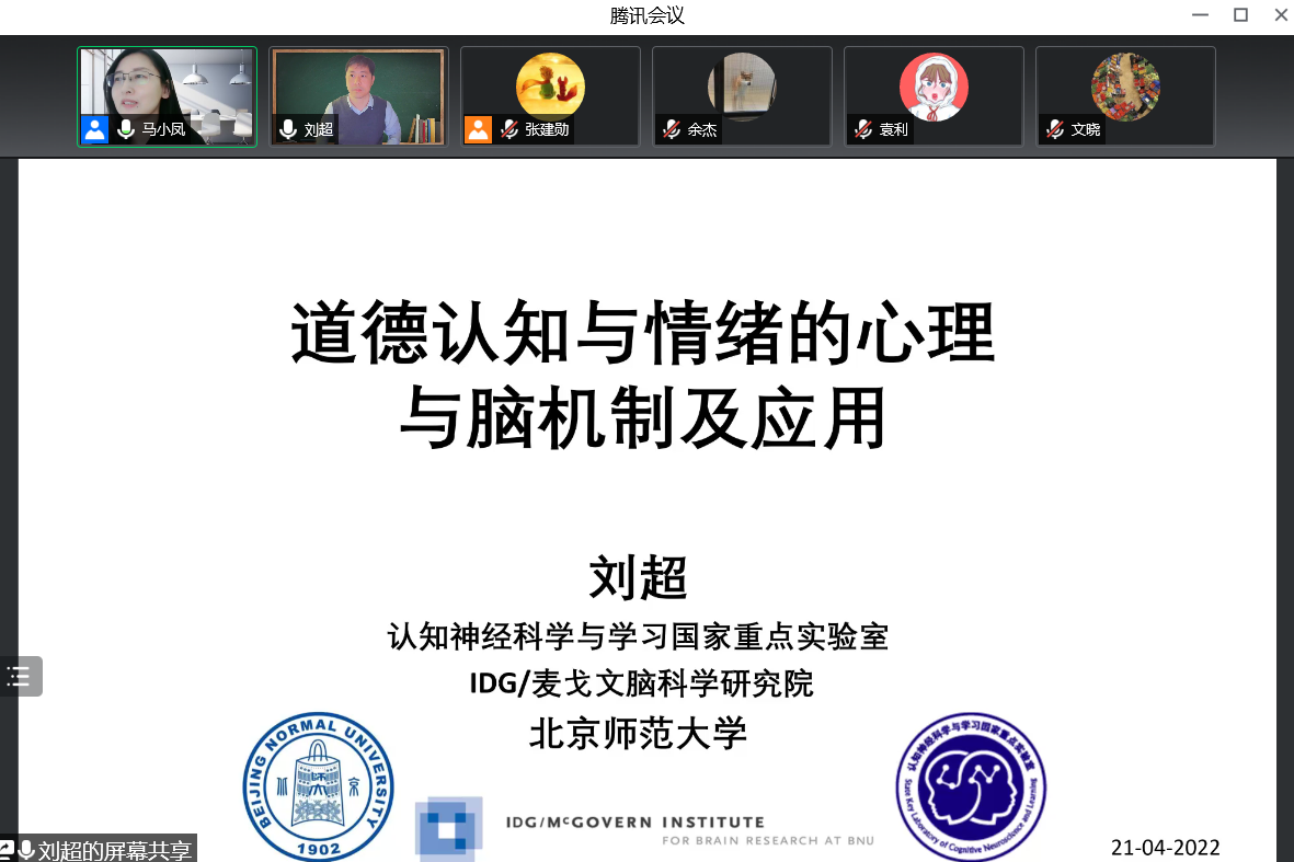 2022年4月21日,应k8凯发邀请,北京师范大学刘超教授通过线上形式为公司师生作题为《道德认知和情绪的心理与脑机制及其应用》的学术报告。本次报告由k8凯发马小凤教授主持,k8凯发100余名师生参加了报告。