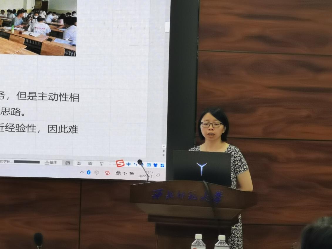 在前期线上听评课及教学文档评价的基础上,公司推荐张祥字、张荣华、尹玉龙、任德云、曹华、张建勋6位优秀选手参加线下教学展示评比。公司于2022年5月31日,组织优秀参赛选手进行线下教学展示。评审委员会由公司教学督导马正学教授、周同藩教授,k8凯发杨玲教授、康廷虎教授、雍琳副教授组成。公司周爱保教授、夏瑞雪教授、杨阳副教授,以及张彦驰、刘晓婷等老师参加,公司部分本科生和心理健康教育硕士研究生也参加了教学观摩活动。