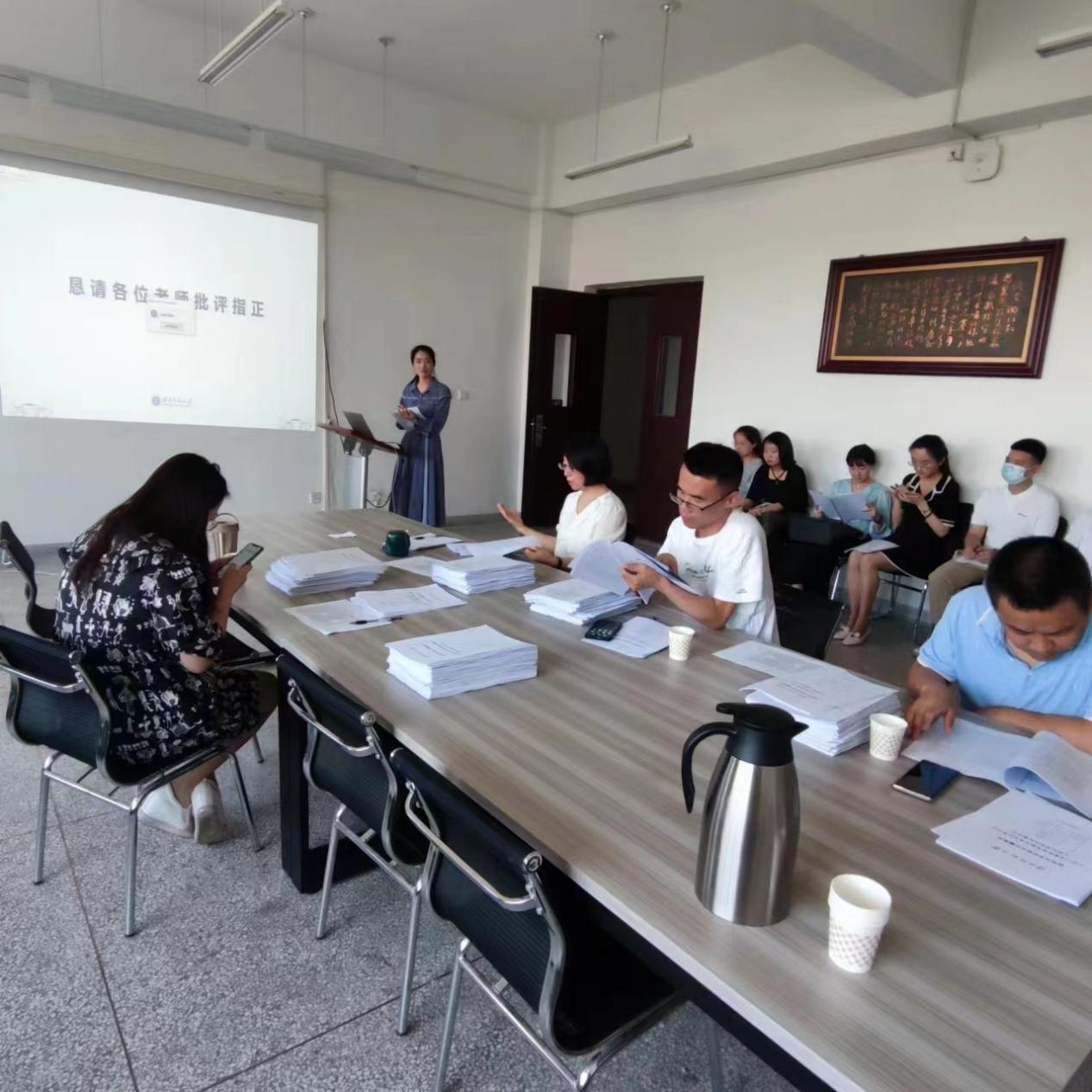 开题会上,参与开题的同学依次汇报了个人的开题报告,报告围绕文献综述、选题意义、问题提出、研究内容、研究创新点等方面对毕业论文设计思路作详细讲解。每位老师都对报告内容逐一进行了点评并指出开题报告中存在的问题,有针对性地提出指导意见和建议。