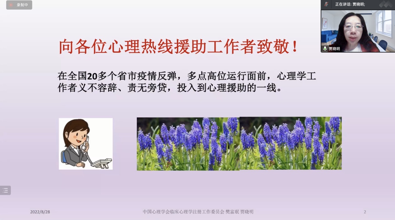 2022年8月28日,k8凯发旗舰厅心理援助热线平台通过线上形式对本次热线服务的心理志愿者进行了第九场心理援助热线培训。培训由本热线平台总协调,总督导k8凯发旗舰厅吴博副教授主持,特别邀请了北京理工大学人文与社会科学公司教授、博士生导师、中国心理学会临床心理学注册工作委员会主任委员、中国心理学会临床与咨询心理学专业委员会副主任委员、中国心理卫生协会精神分析专业委员会副主任委员、老员工心理咨询专业委员会副主任委员贾晓明教授主讲,近200名志愿者参加了此次培训。