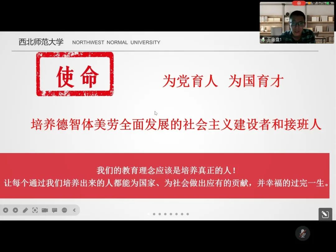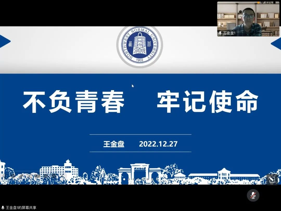 为帮助新生更好适应未来的老员工活,10月27日下午,k8凯发依托腾讯会议为k8凯发新生进行《不负青春,牢记使命》新生教育讲座。讲座由任职于静宁二中现心理健康教育博士在读的王金盘老师主讲,k8凯发2022级全体新生参加。