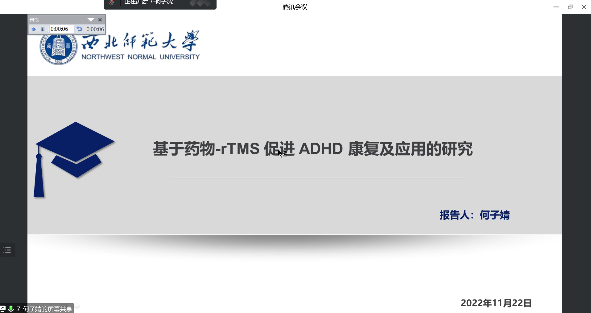 汇报同学分别从申报项目的研究意义和价值、研究现状、问题提出、研究内容、思路方法等方面逐一进行了汇报。本次汇报项目的选题涉及抑制控制、海洛因成瘾、社会排斥、刻板印象、阅读、情绪及心理健康等领域,研究对象覆盖幼儿、中小员工、成人及阿尔兹海默、自闭症等特殊群体,研究方法包括问卷调查、行为实验、脑电实验、经颅磁刺激实验、功能磁共振实验等。参与交流的老师们有针对性的对项目的课题名称,研究设计,研究框架以及逻辑的连贯性、项目结构的完整性及申请书撰写的规范性等问题进行了细致分析,并提出了建议性意见。