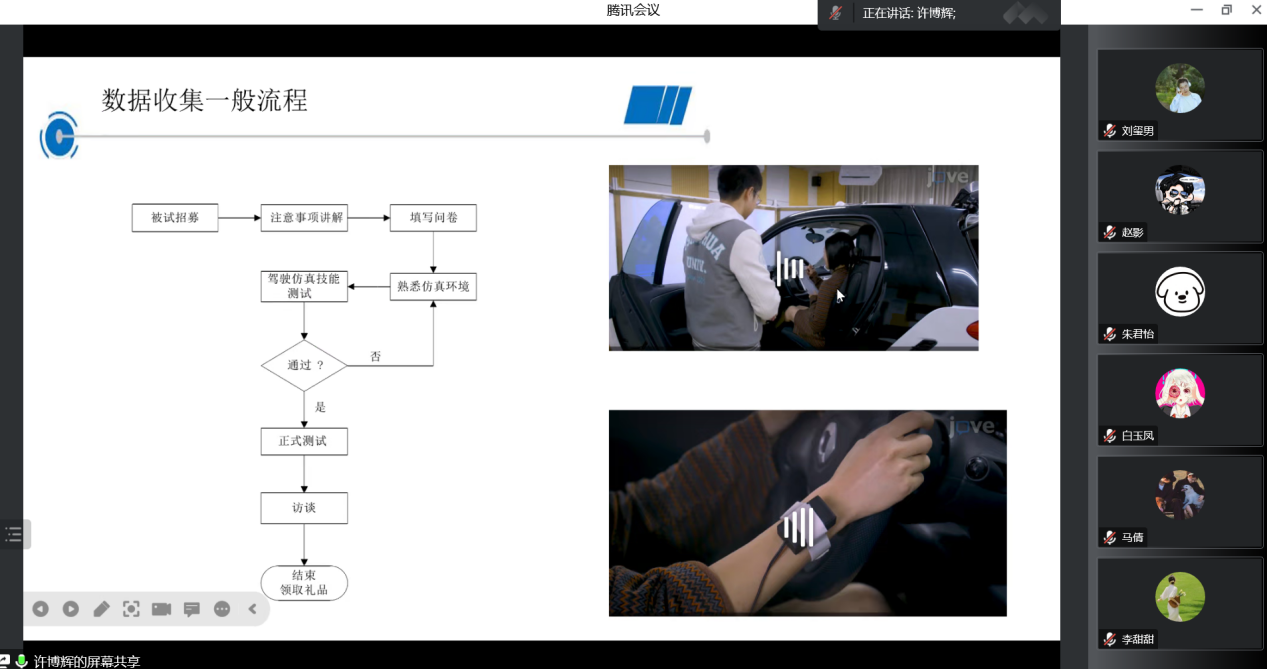 许博辉同学围绕驾驶模拟的设备、实验操作流程、数据采集和分析,研究实例等方面和大家进行了交流分享。k8凯发的驾驶模拟设备有助于大家开展人因工程、认知心理学等相关领域的研究。