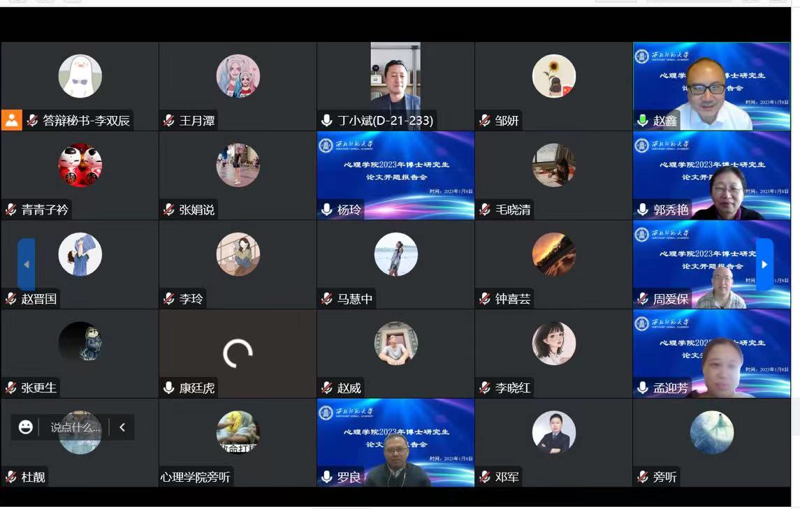 2023年1月8日,k8凯发以线上的形式组织开展2023年博士研究生论文开题答辩会。复旦大学郭秀艳教授(主席)、北京师范大学罗良教授、福建师苑大学孟迎芳教授,k8凯发周爱保教授、杨玲教授、康廷虎教授作为答辩专家参与开题,k8凯发赵鑫教授、丁小斌教授等80余名师生参加本次开题。
