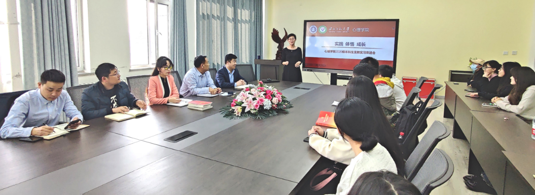 公司康廷虎副经理、应用心理系刘显翠主任、班主任曹华副教授和王一飞老师在会上也对同学们支教实习前的准备、路上的安全,以及支教实习工作的开展,可能面临的困难等做了安排和分享,要求同学们团结友爱、认真努力,把自己所学的心理学专业知识应用到实践工作中,创新性地开展工作。同时,也祝愿同学们通过支教实习,能够培养自己的专业实践能力,收获快乐幸福和发展成长。此外,与会的师生就支教实习的行程安排、人员联系与衔接、实习支教工作的开展等问题进行了交流。
