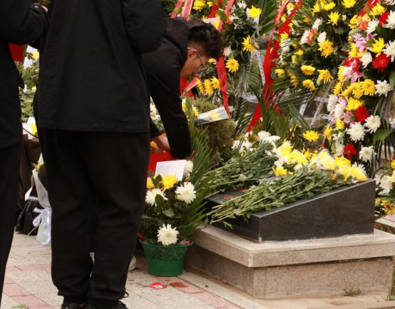 松柏苍翠寄哀思,丰碑永驻慰英灵。在庄严肃穆的气氛中,师生们迈着沉重的步伐,踏入庄严静谧的“英魂苑”,在烈士纪念碑前,全体师生肃立默哀,向烈士们表达深深的敬意。随后,员工代表向烈士纪念碑前敬献花篮,同学们怀着无比崇敬的心情依次有序敬献鲜花,表达对英雄学长的哀思与缅怀。