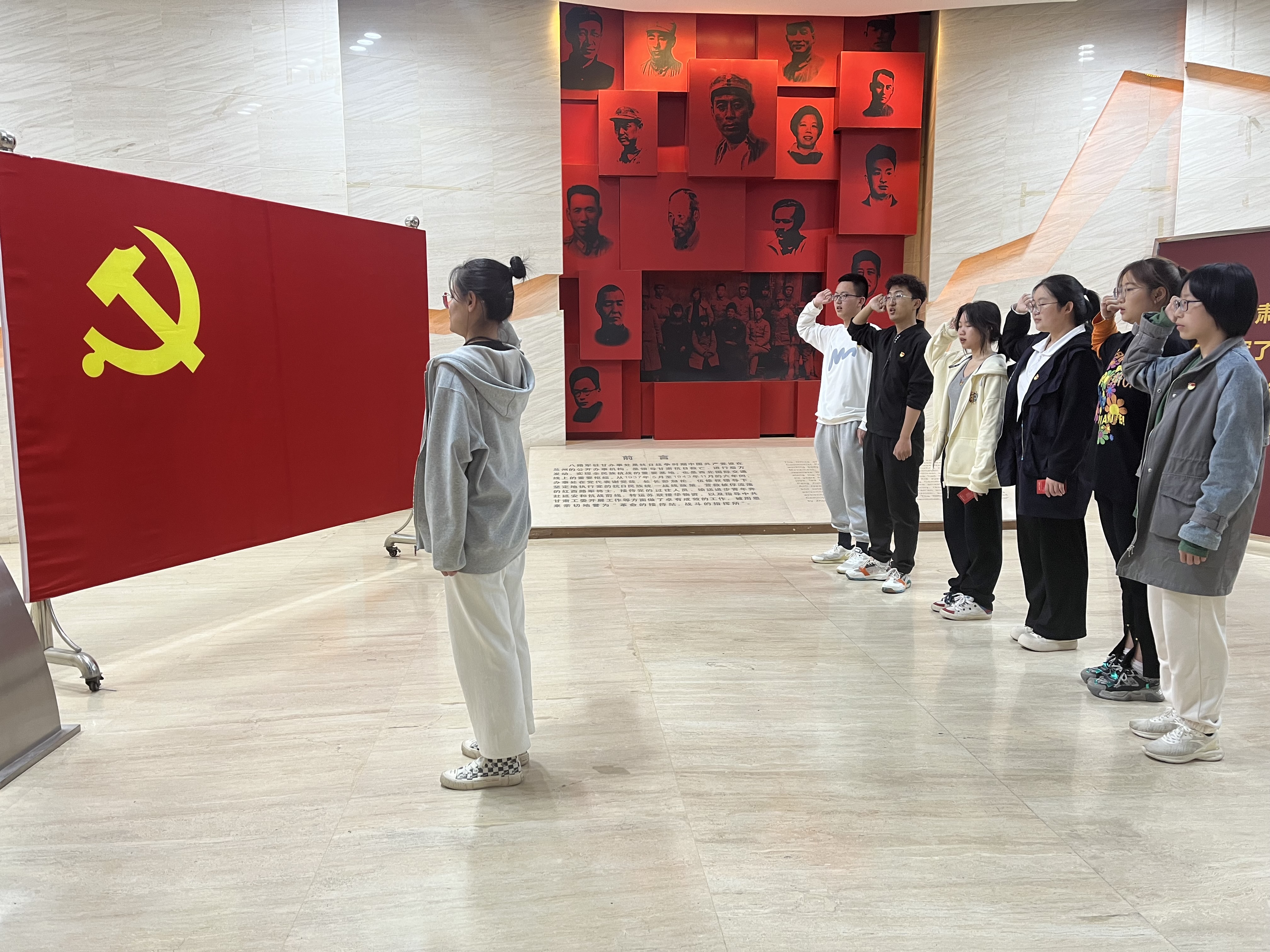 参观完毕后,在支部书记曹华老师的带领下,支部6名预备党员进行了入党宣誓活动。预备党员宣誓仪式庄严,在宣誓过程中,他们肃立并举起右手握拳,面向党旗,声音铿锵有力,表达了自己对加入中国共产党的坚定决心和信仰,表明了自己对共产主义事业的忠诚与承诺,并表示愿意为此不懈努力,为党和人民的事业做出贡献。