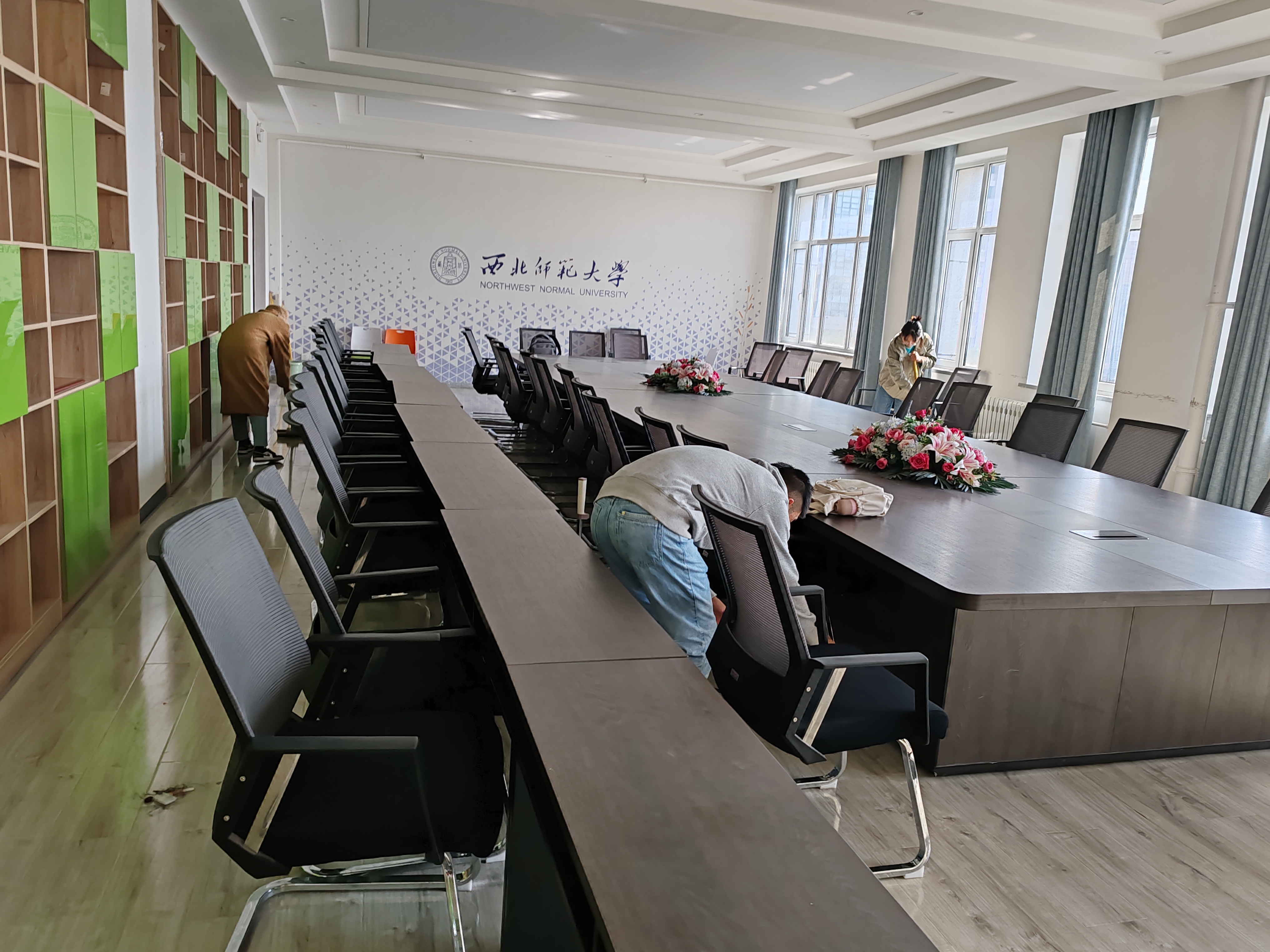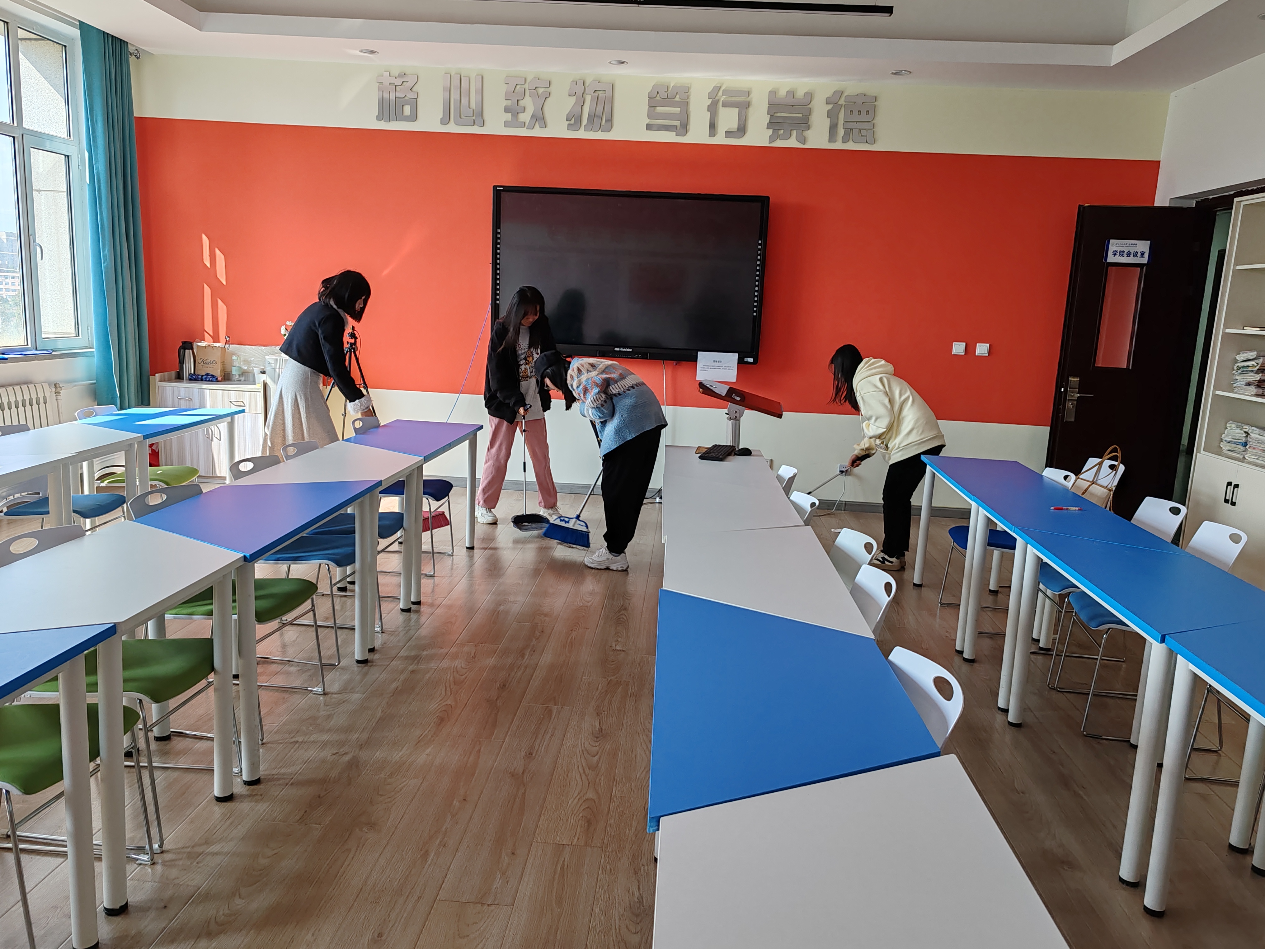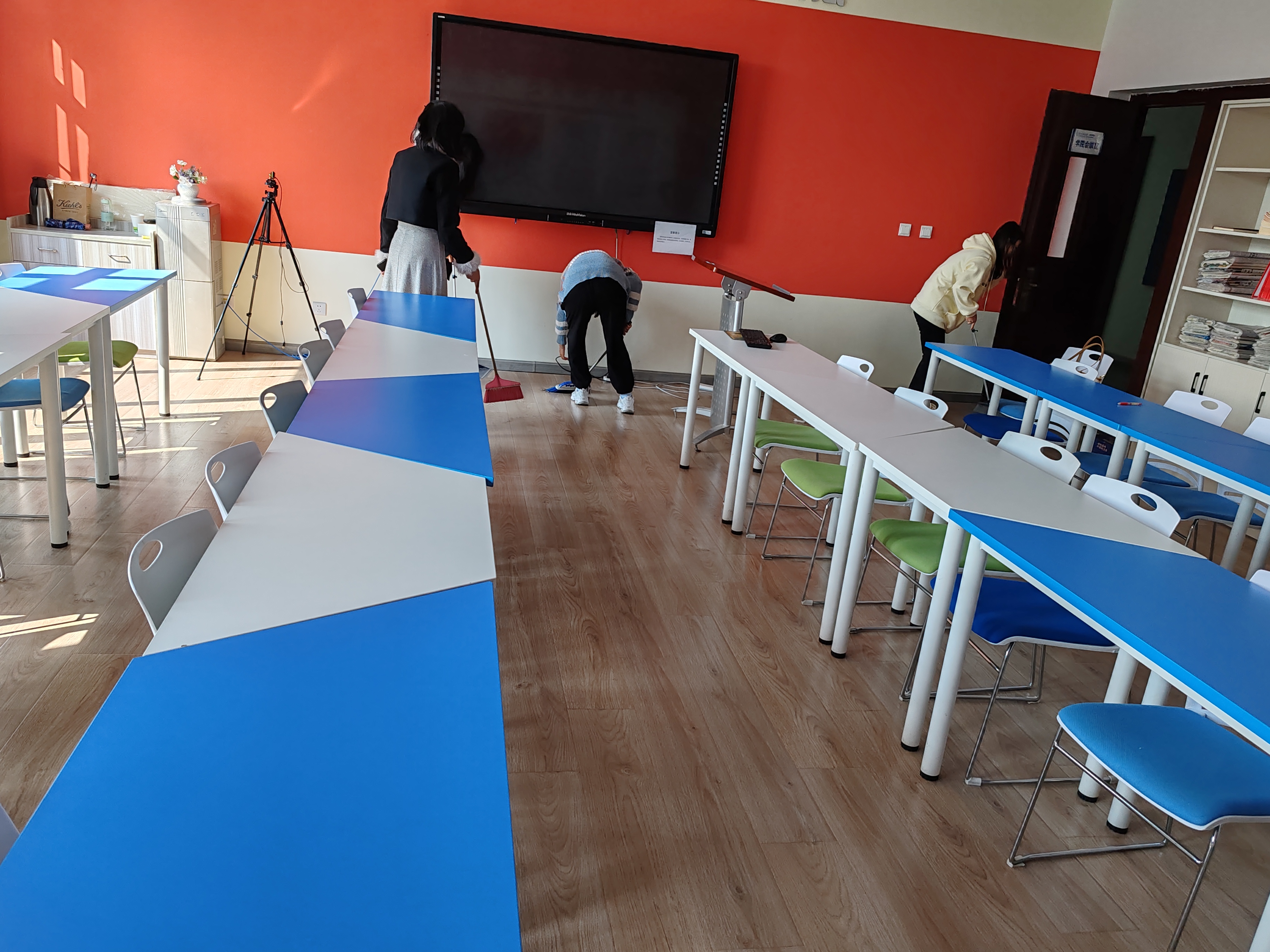 一勤天下无难事,时时扫洗处处净。本次活动中同学们热情饱满,积极负责,一起对负责区域的地面进行了彻底的清洁也对会议室的讲台,桌椅,以及墙角都进行了细致的打扫,使整个会议室焕然一新,经过大家的共同努力,教室、会议室焕然一新,呈现出整洁亮丽、活泼清新的新气象,为老师和同学们营造了更舒适、更健康的工作和学习环境。